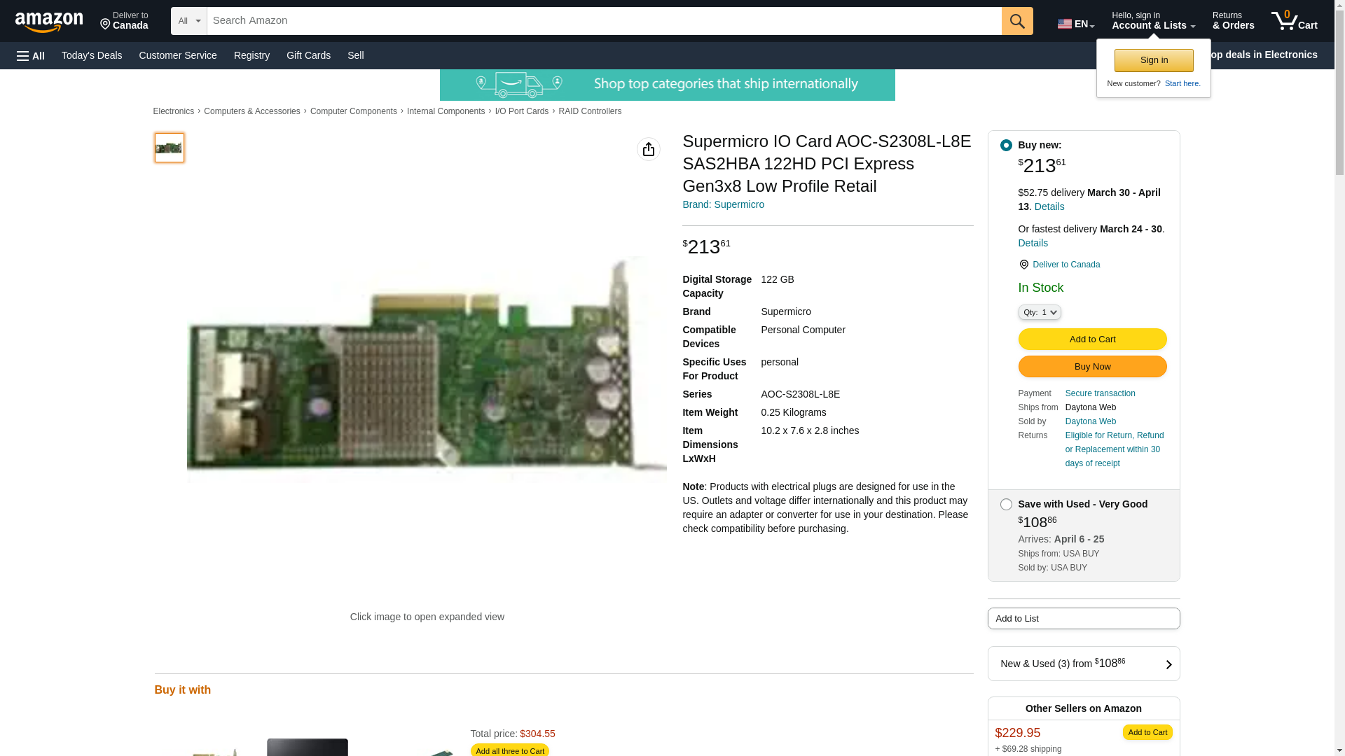 | Feature | Supermicro IO Card AOC-S2308L-L8E SAS2HBA 122HD PCI Express Gen3x8 Low Profile Retail |