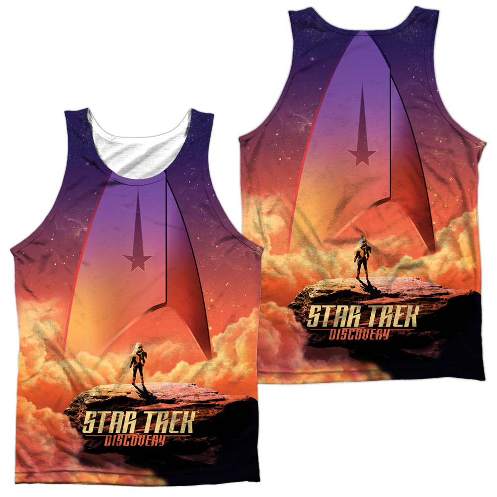 Trevco CBS2316FB-TKPP-2 Star Trek Discovery & Explore Front & Back Print Adult Polyster Tank Top, White - Medium