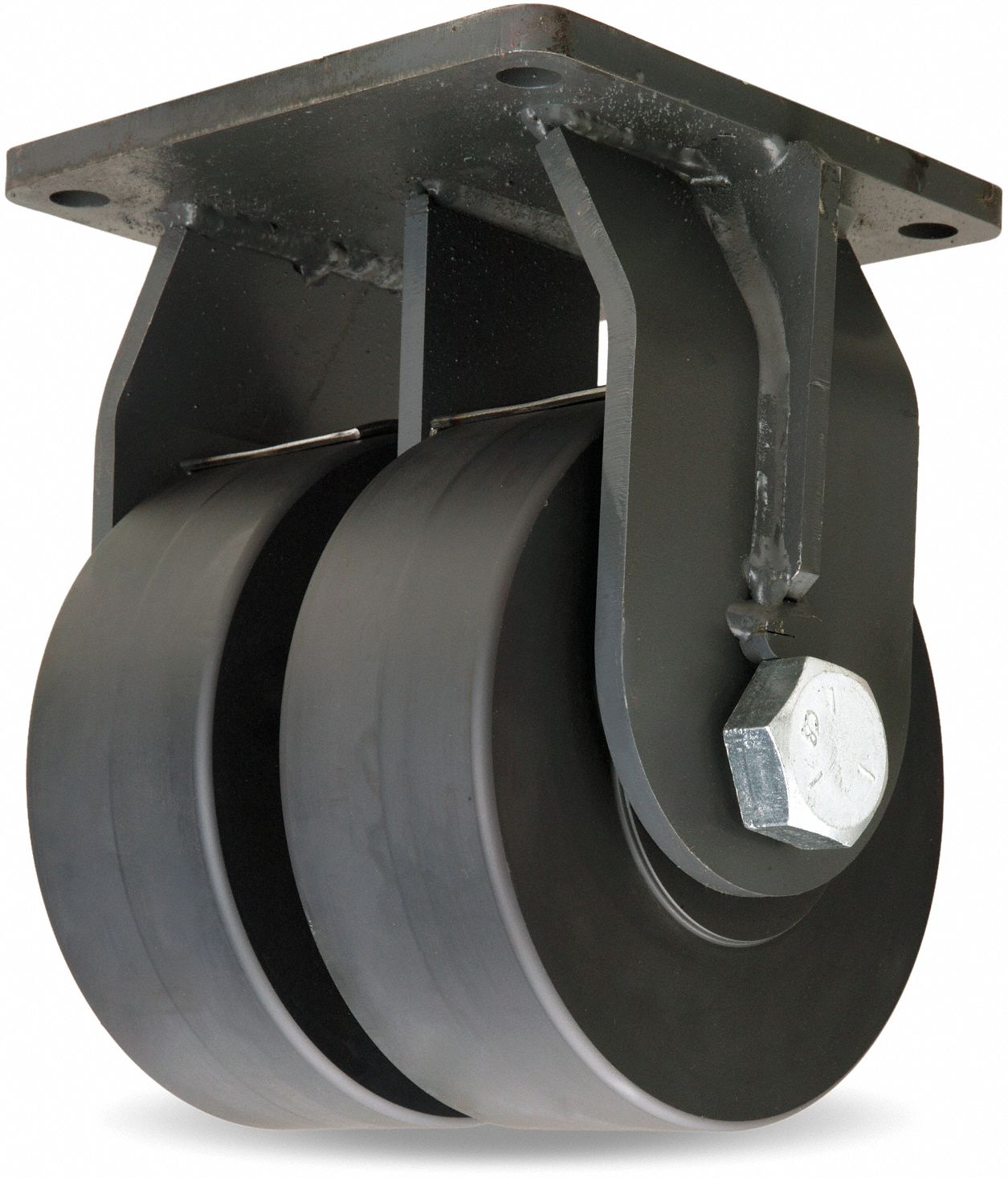 The dual wheels on the Maxi-Duty casters addresses the problem of how to restrict overall height while providing adequate carrying capacity on resilient tread wheels. Dual wheel casters also improve stability and swivel more easily than wider-face single wheels because differential action reduces the aoescrubbinga effect of soft treads against the floors. Both the secondary thrust bearing and the main load bearing are precision-made, and the new HPI Swivel Technology is now a standard feature in this dual wheel series providing smoother swiveling and longer life.