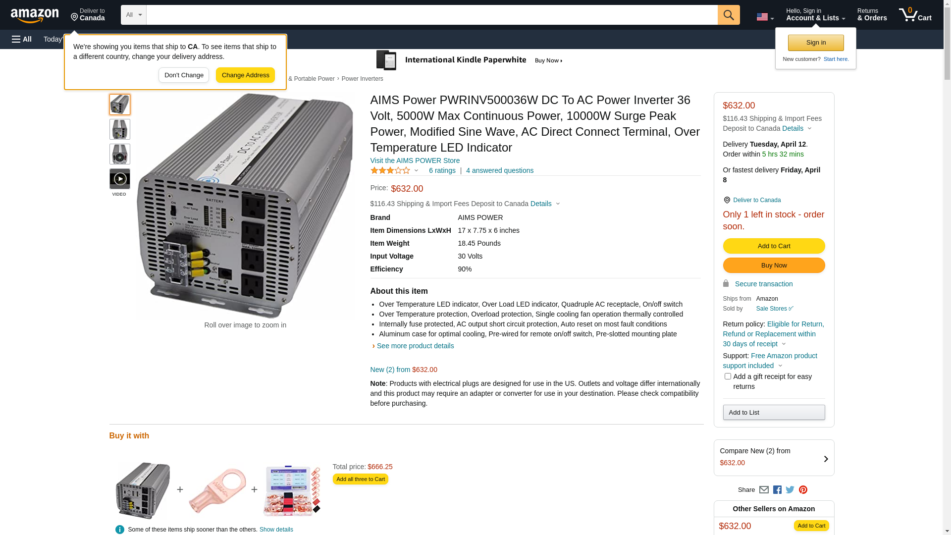 | PWRINV500036W | 1 | 5 | 1 | 1 @ $632.00 | |