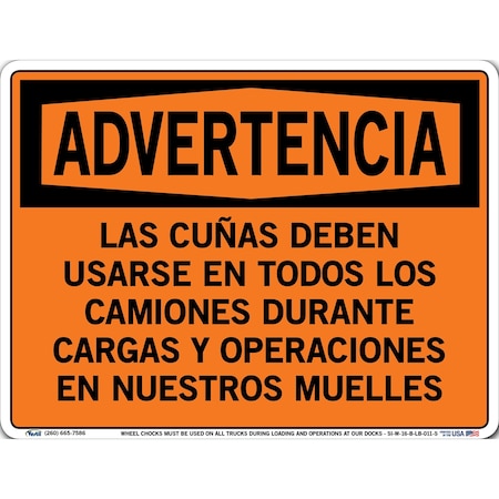 Vestil SI-W-16-B-LB-011-S WHEEL CHOCKS MUST BE USED ON ALL TRUCKS DURING LOADING AND OPERATIONS AT OUR DOCKS Warning Label, Vinyl, 0.011" Overall Size, 12.5" W x 9.5" H