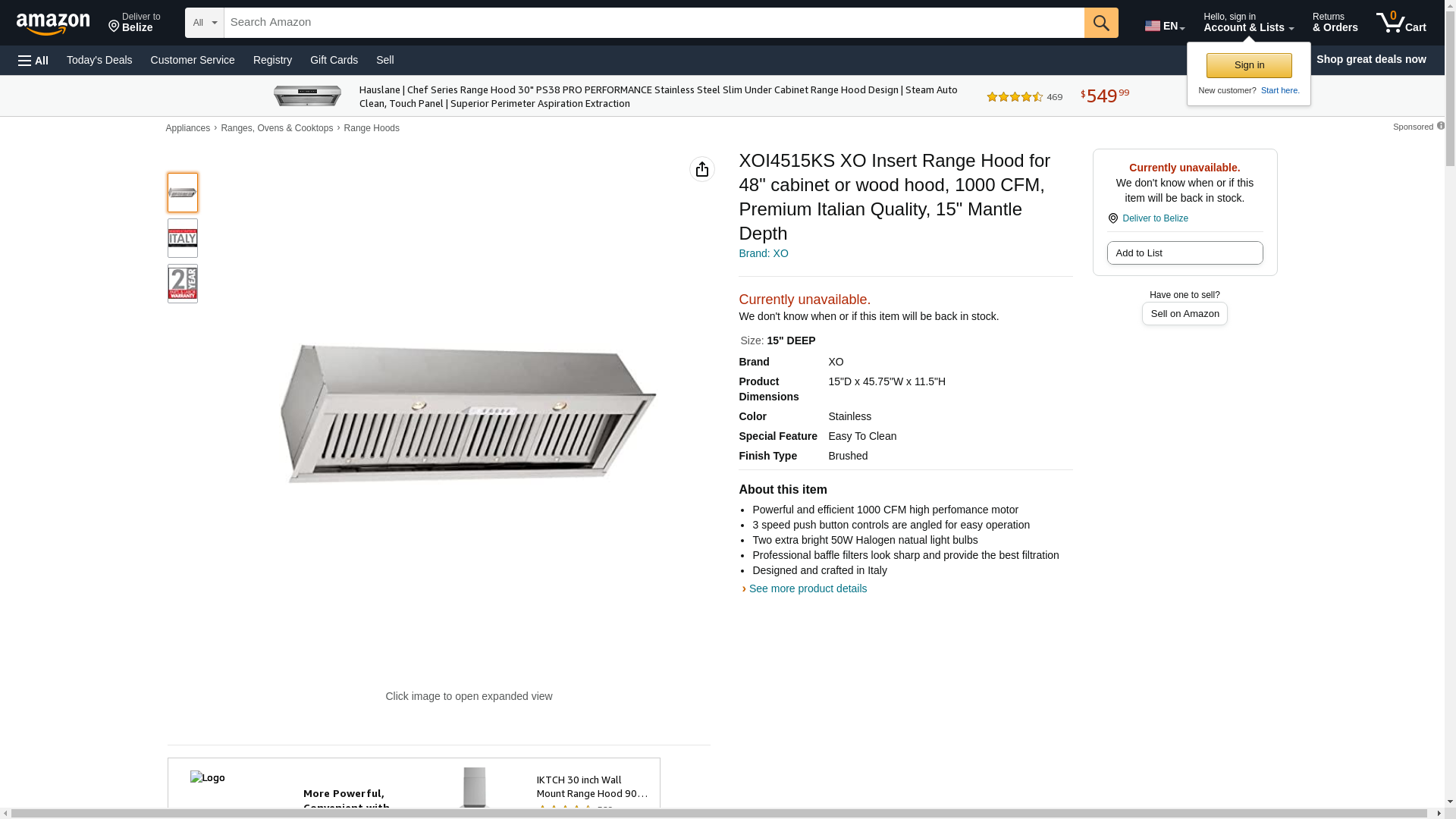 XOI4515KS XO Insert Range Hood for 48" cabinet or wood hood, 1000 CFM, Premium Italian Quality, 15" Mantle Depth