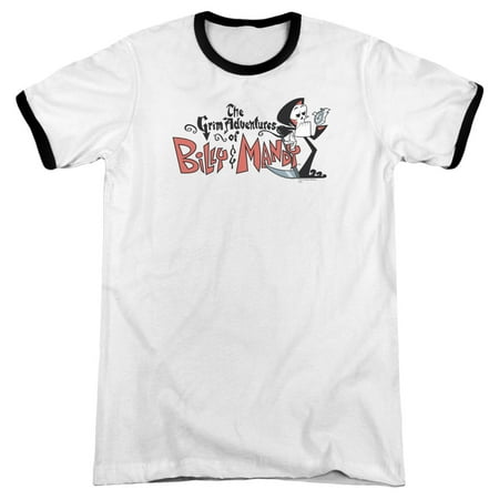 Billy & Mandy Logo Mens Adult Heather Ringer Shirt White/Black Lg