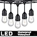 FOXLUX Outdoor String Lights - 48 ft Shatterproof and Waterproof Heavy-Duty LED Outdoor Lights - 15 Hanging Sockets, 1 W Plastic Bulbs - Create Ambience for Patio, Backyard, Garden, Bistro, Cafe