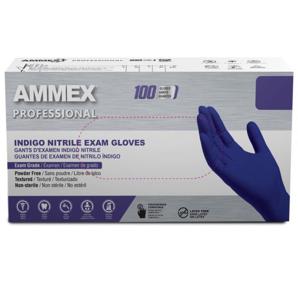 Ammex Indigo Nitrile Disposable Exam Gloves, 3 Mil, Latex/Powder Free, Textured, Medium, Case of 1000