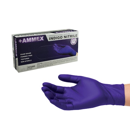 AMMEX GLOVES AINPF44100 AMMEX GLOVES AMMEX Indigo Nitrile PF Exam Gloves
