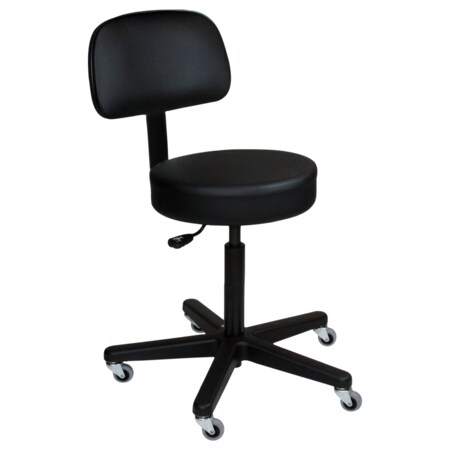 Blickman 1210 Hand Operated Exam Stool W/ Backrest W/5 Leg Black Composite Base