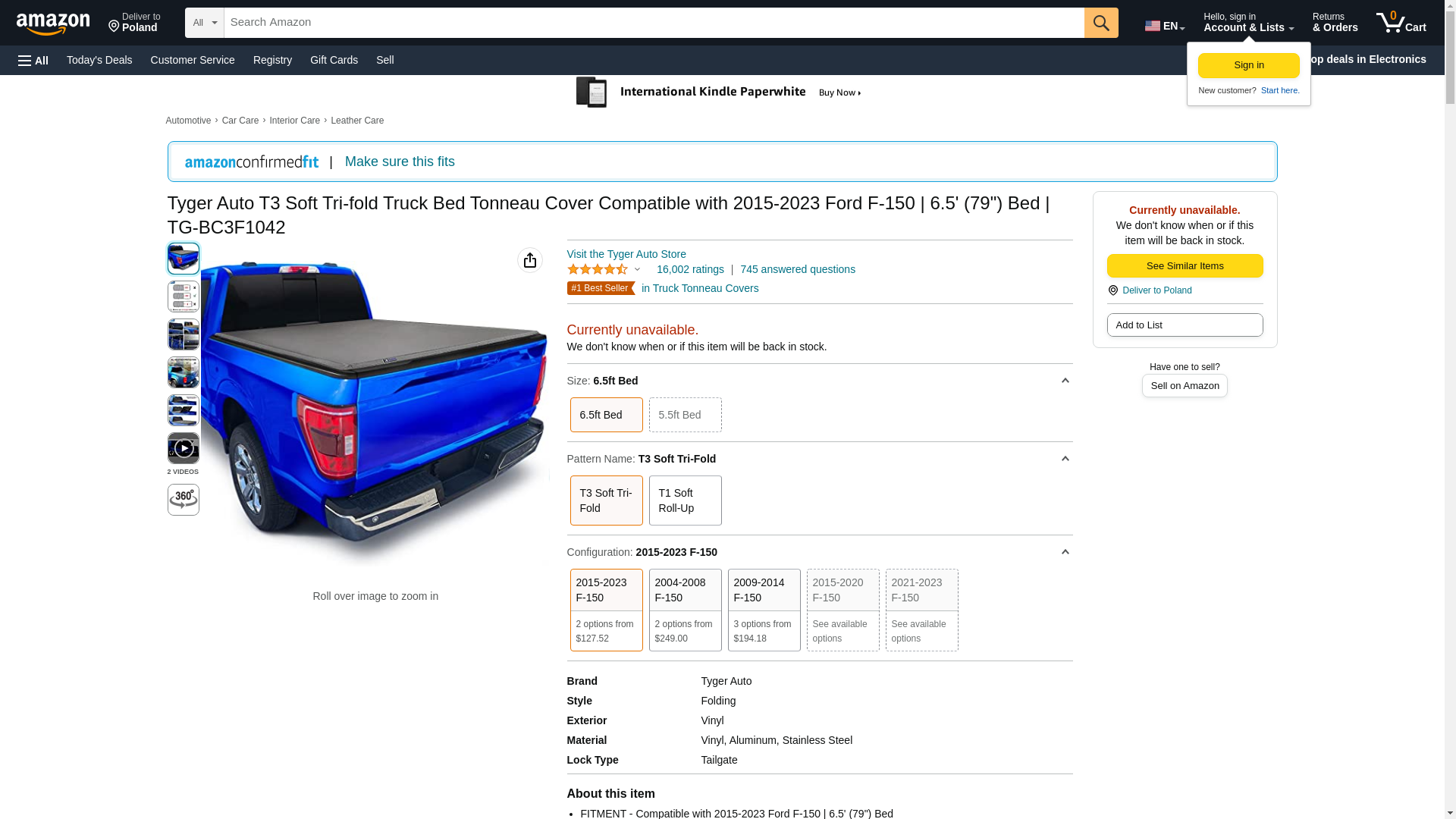 Tyger Auto T3 Soft Tri-Fold Truck Bed Tonneau Cover (6.5-Feet) Ford F-150 2015-2020 | TG-BC3F1042