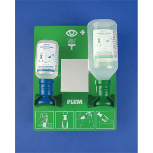 Plum Open Eye Wash Station; 2 Bottle, 200mL Sterile ph Neutralizing, 500mL Sterile Saline Lab Equipment | spectraservices.com