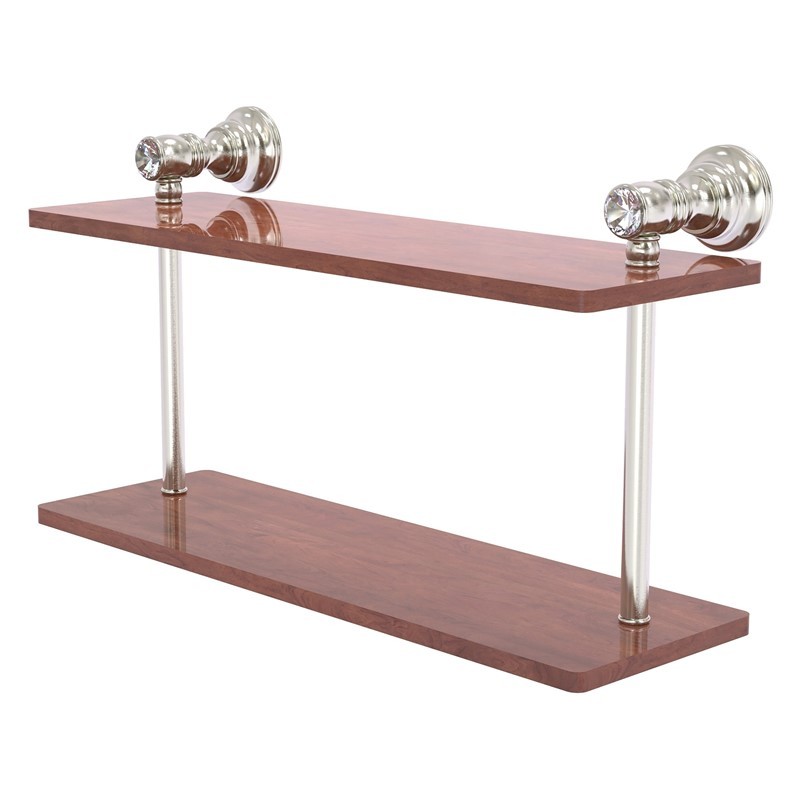 ALLIED BRASS CC-2-16-IRW-SN CAROLINA CRYSTAL 16 INCH TWO TIERED WOOD SHELF, SATIN NICKEL