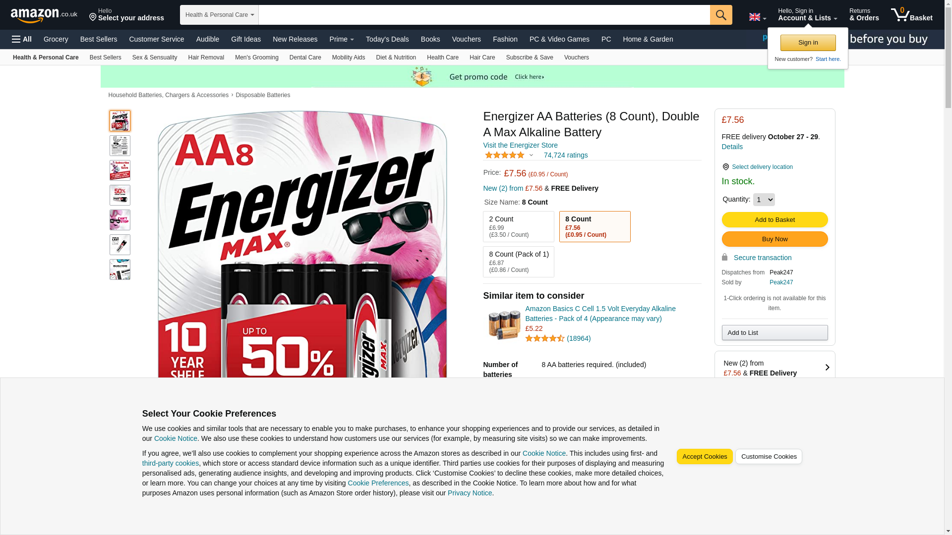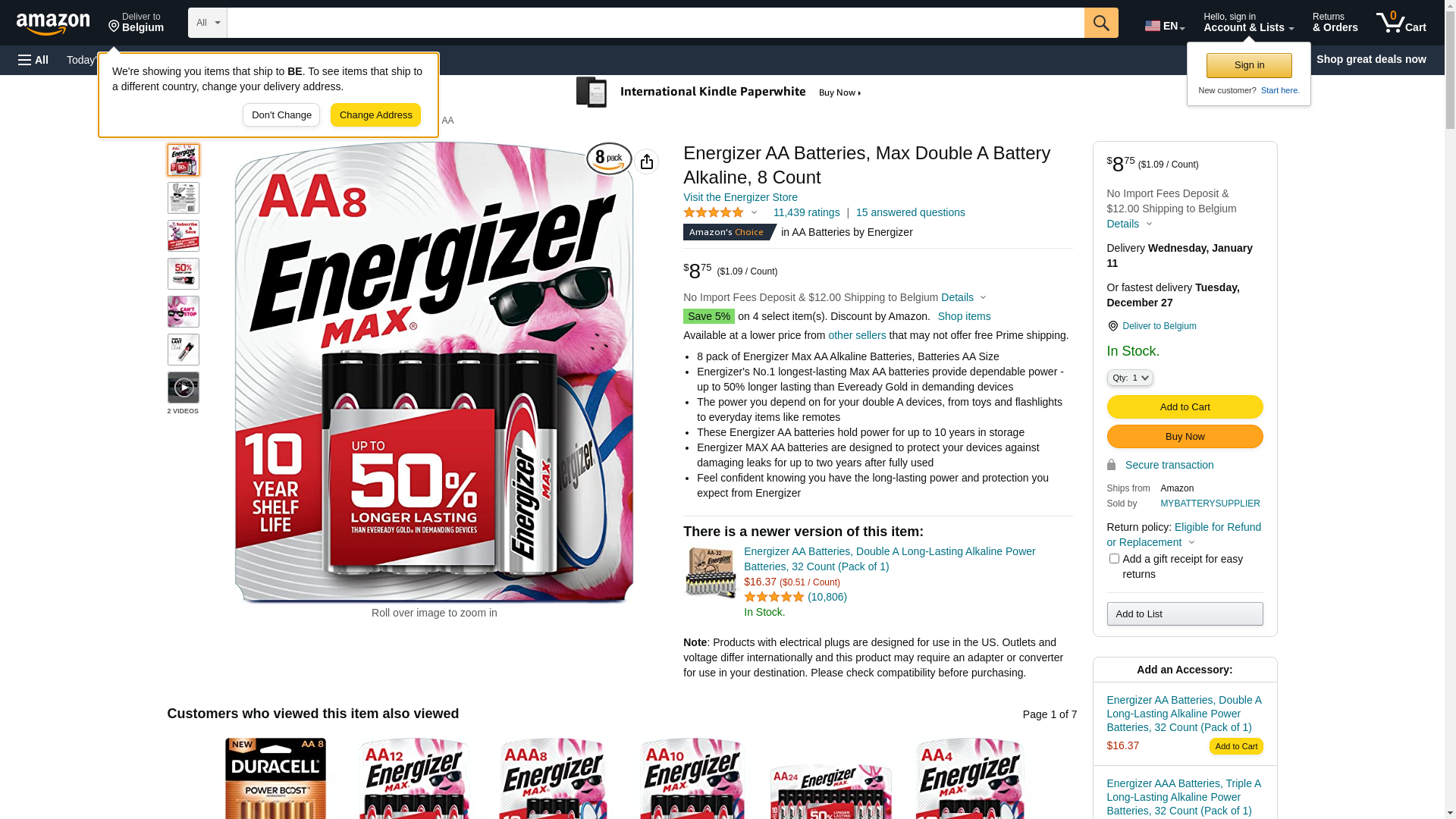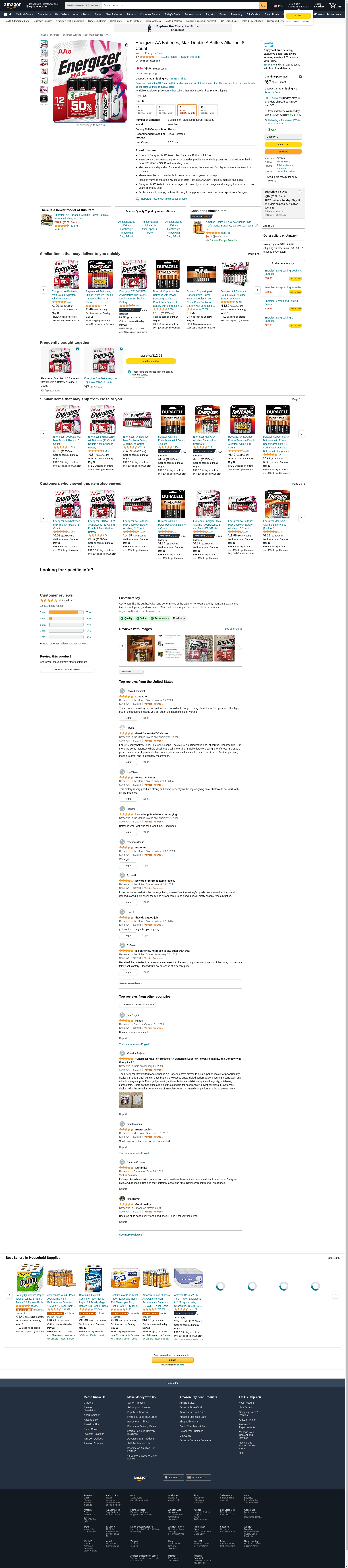 Energizer AA Batteries (8 Count), Double A Max Alkaline Battery