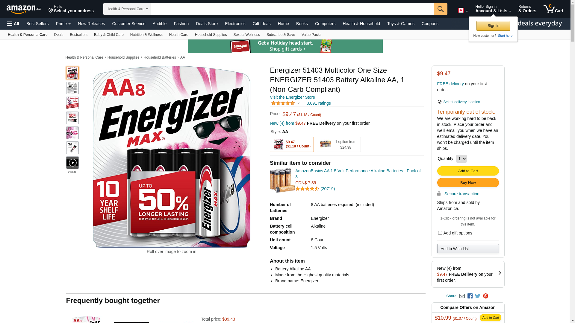 Energizer? MAX Alkaline Batteries, AA, 8 Batteries/Pack