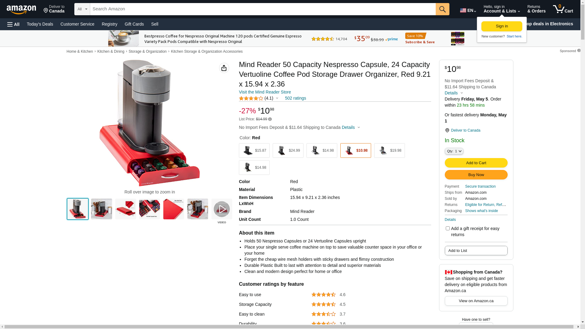 Mind Reader Anchor Coffee Pod Storage Drawer For 50 Nespresso Capsules, Red (NEST3PC-RED) | Quill.com