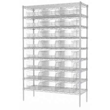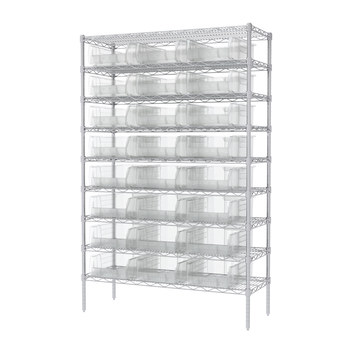 Akro-Mils AWS184830280SC Wire Bin Shelving System with 9 Shelves and 24 Clear Supersize Akro Bins, 48-Inch x 18-Inch x 74-Inch, Chrome
