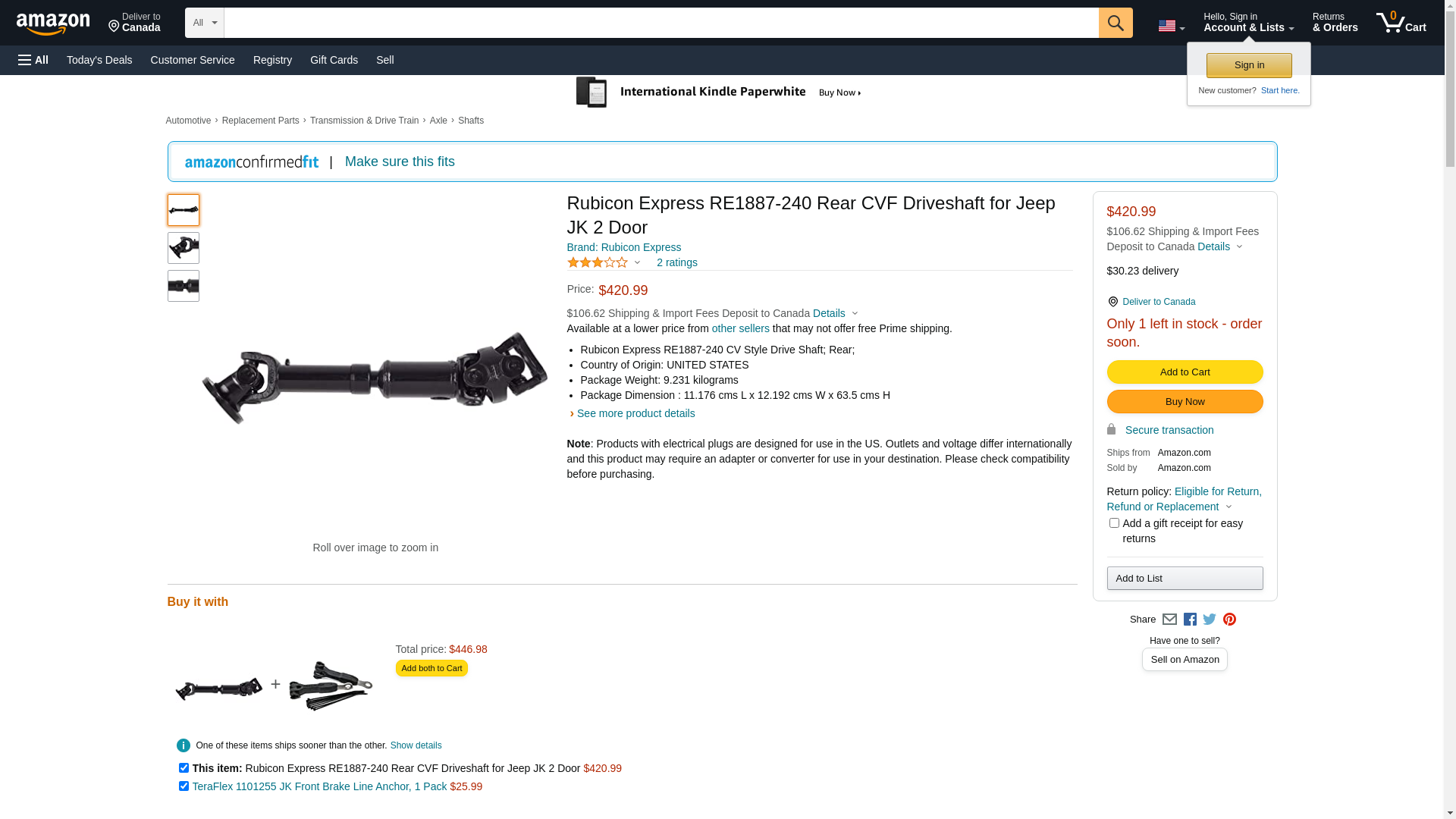 Rubicon Express RE1887-240 CV Style Drive Shaft Fits 07-18 Wrangler (JK) sold by Dan's House of Speed | Motoroso