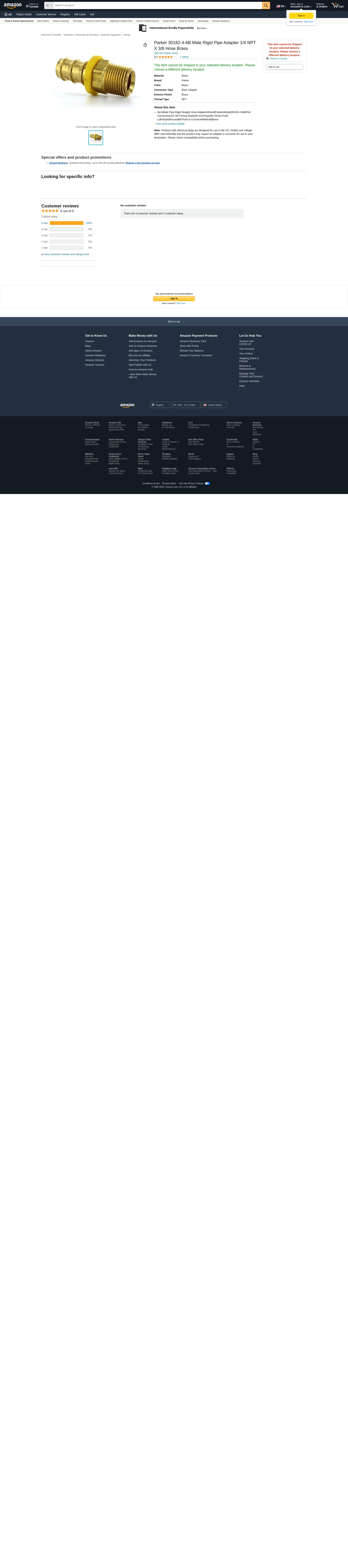 Parker 30182-4-6B Male Rigid Pipe Adapter 1/4 NPT X 3/8 Hose Brass