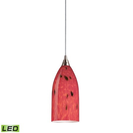 1 Light Pendant In Satin Nickel And Fire Red Glass - LED Offering Up To 800 Lumens (60 Watt Equivalent) With Full Range Dimming. Includes An Easily Replaceable LED Bulb (120V). 502-1FR-LED by Elk Lighting