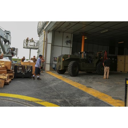 LAMINATED POSTER U.S. Navy Sailors assist crew members aboard the Sealift Command Joint High-Speed Vessel USNS Spearh Poster Print 24 x 36