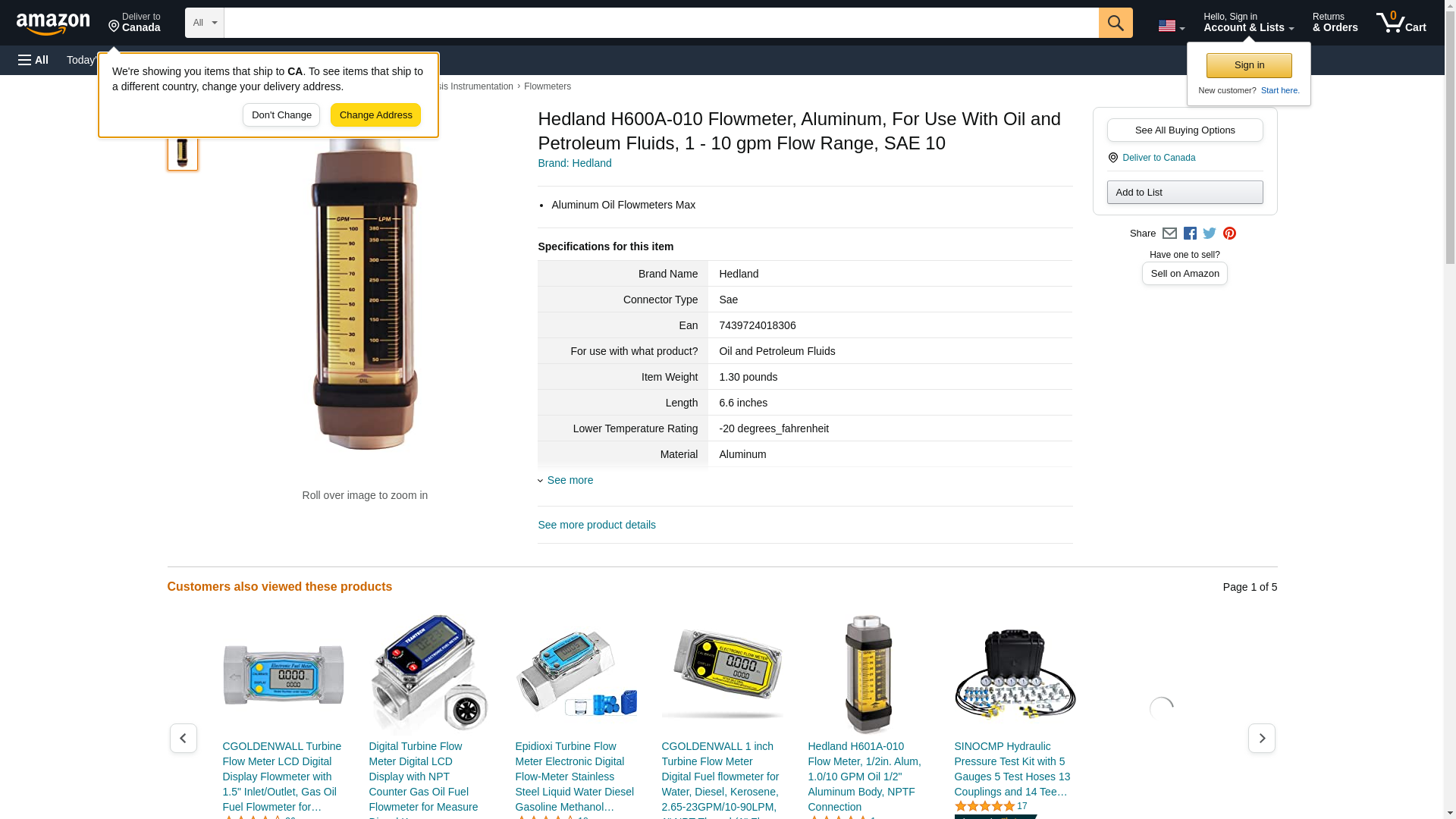 Hedland Flowmeter, 1.0-10 - 5-38 GPM-LPM H600A-010 ZO-G2645246 - SIM Supply
