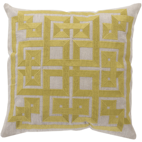 Surya Rug LD005-1818D Square Taupe, Lime Decorative Down Feathers Pillow 18 x 18 in.