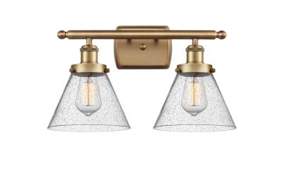 INNOVATIONS LIGHTING 916-2W-BB-G44-LED BALLSTON LARGE CONE 2 LIGHT 16 INCH SEEDY GLASS VANITY LIGHT, BRUSHED BRASS, LED