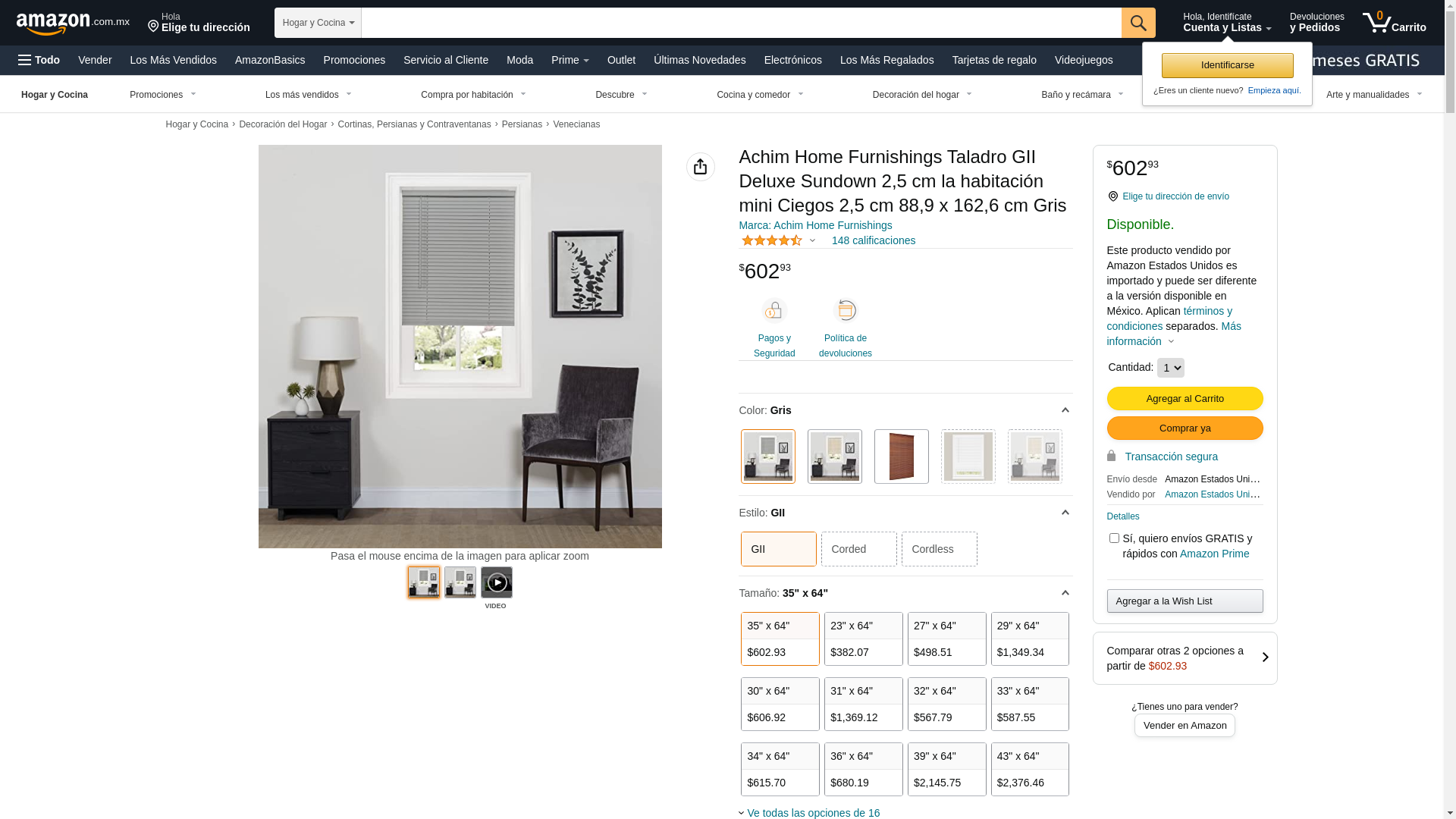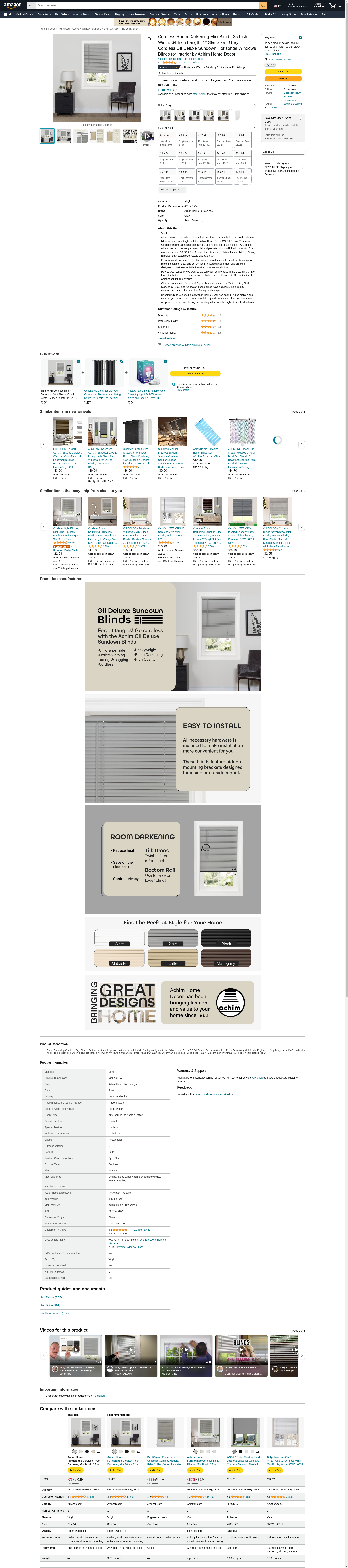 Cordless Room Darkening Mini Blind - 35 Inch Length, 64 Inch Height, 1" Slat Size - Gray - Cordless GII Deluxe Sundown Horizontal Windows Blinds for Interior by Achim Home Decor