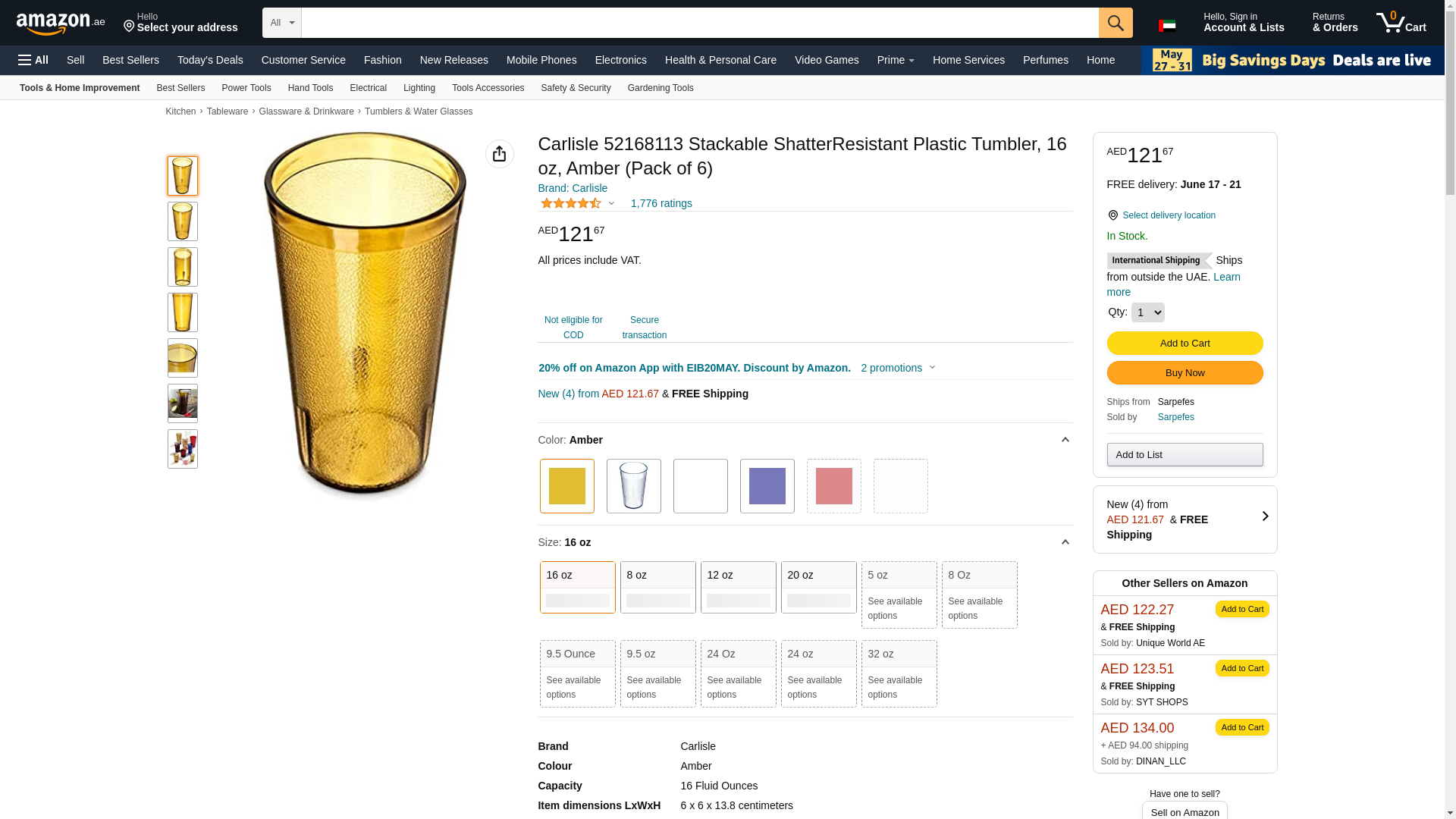 Carlisle 5216-8113 Stackable Tumbler, 16 oz. (17.70 oz. flush fill), tapered, textured exterior, dishwasher- 5216-8113 - Carlisle Foodservice Products Carlisle 5216-8113 Stackable Tumbler, 16 Oz. (17.70 Oz. Flush Fill), Tapered, Textured Exterior, DisCarlisle 5216-8113 Stackable Tumbler, 16 oz. (17.70 oz. flush fill), tapered, textured exterior, dishwasher- 5216-8113 - Carlisle Foodservice Products16 Oz. (17.70 Oz. Flush Fill)TaperedTextured ExteriorDishwasher SafeRecyclableSanAmberBpa FreeMade In Usa (6 Per Pack) (Cash N' Carry)Finish: TexturedCapacity: 16 OzColor: AmberConstruction: San Tumblers 52168113, CAR-5216-8113