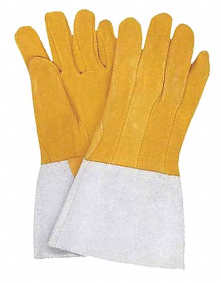 Bob Dale 60-1-1144P-10 Premium Split Leather Deerskin Tag Welder Glove with Left Hand Patch, Size 10, Tan