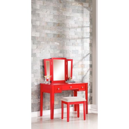 <ul> <li>Make Up Vanity Set With Bench</li> <li>Tri-Folding Mirror</li> <li>3 Drawers</li> <li>Upholstered Cushion Bench</li> <li>Dimensions (Approximate): Table: 43" X 19" X 54"H (To Top Of Mirror)</li> </ul>