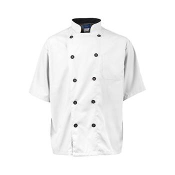 Mens Short Sleeve Active Chef Coat, White with Black Accent, 2XL