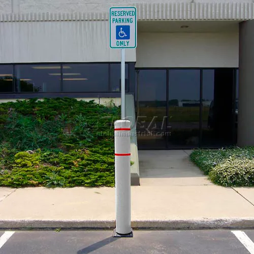 52"H FlexBollard™ with 8'H Sign Post - Asphalt Installation - White Cover/Red Tapes