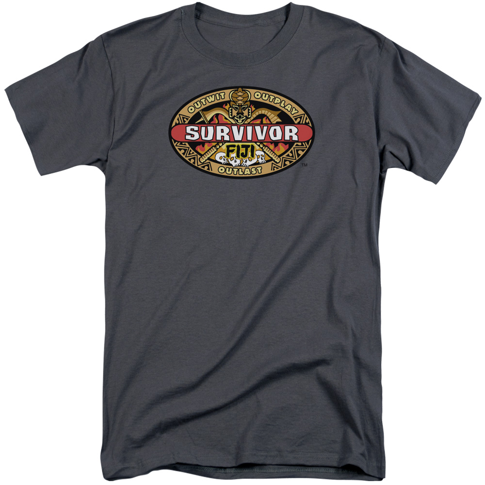 Trevco CBS693C-ATT-4 Survivor & Fiji Short Sleeve Adult Cotton Tall T-Shirt, Charcoal - Extra Large