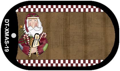 Santa With Rag Doll Novelty Metal Dog Tag Necklace DT-XMAS-19. 1" x 2" Novelty Metal Dog Tag Necklace including 15" silver chain and silencer. Made of the highest quality aluminum for a weather resistant finish. It is lightweight & durable. Proudly made in the USA.