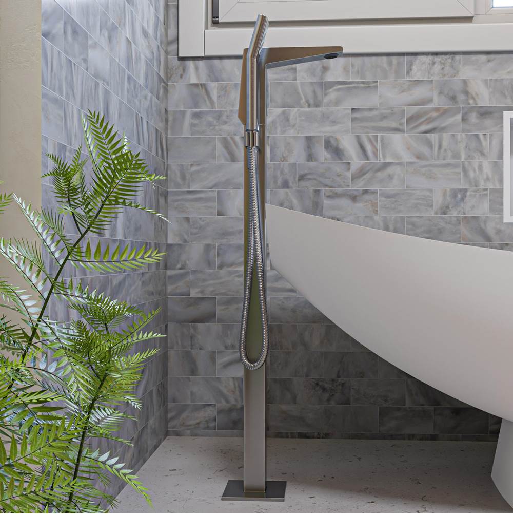 AB2475-BN Single Hole Floor Mounted Tub Filler with Brass, Hand-Held Shower Head and 5 Year Limited Lifetime Warranty in Brushed Nickel