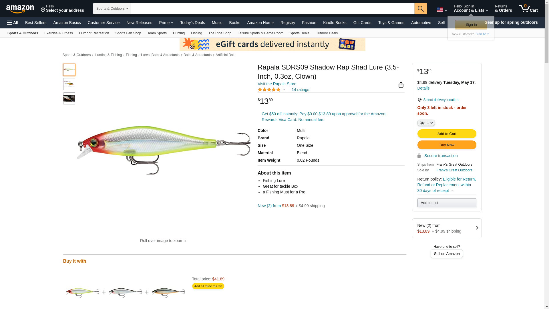 Rapala SDRS09 Shadow Rap Shad Lure (3.5-Inch, 0.3oz, Clown)