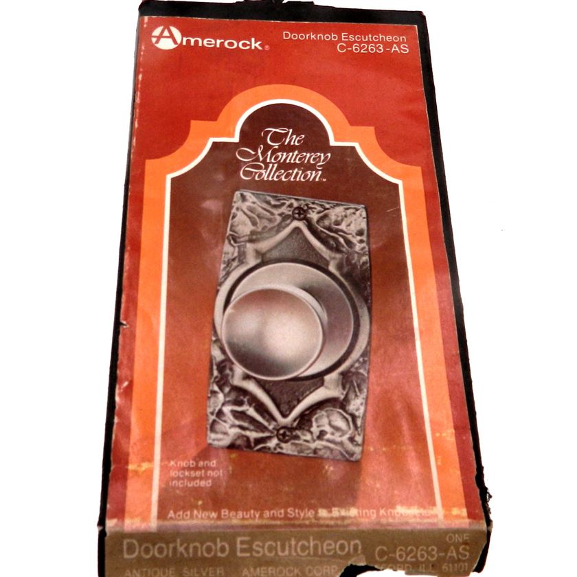 As an Amazon Associate, we earn from qualifying purchases. Vintage Amerock Monterey Door Knob Escutcheon Antique Silver 6263-AS Amerock . AM-6263-AS Gallery Attributes Brand name, Manufacturer name, ManufacturerAmerock Extra Product NameVintage Amerock Monterey Door Knob Escutcheon Antique Silver 6263-AS moq, multiple, tierMinQty11 MPN, SKUAM-6263-AS qtyInStock0 snippetVintage Amerock Monterey escutcheon for door knobs in Antique Silver, model 6263-AS. New but old stock, may show signs of long storage. Vintage Amerock Monterey collection Beautiful Antique Silver finish Distinctive Mediterranean design in rich detail Matching knobs and handles available Dimensions: 5 5/8 in. x 3 3/16 tierPrice113.61 Distributor offers SellerSKUMOQIn stockMultiplePrices westwoodscabinethardware.comAM-6263-AS111 @ $13.61
