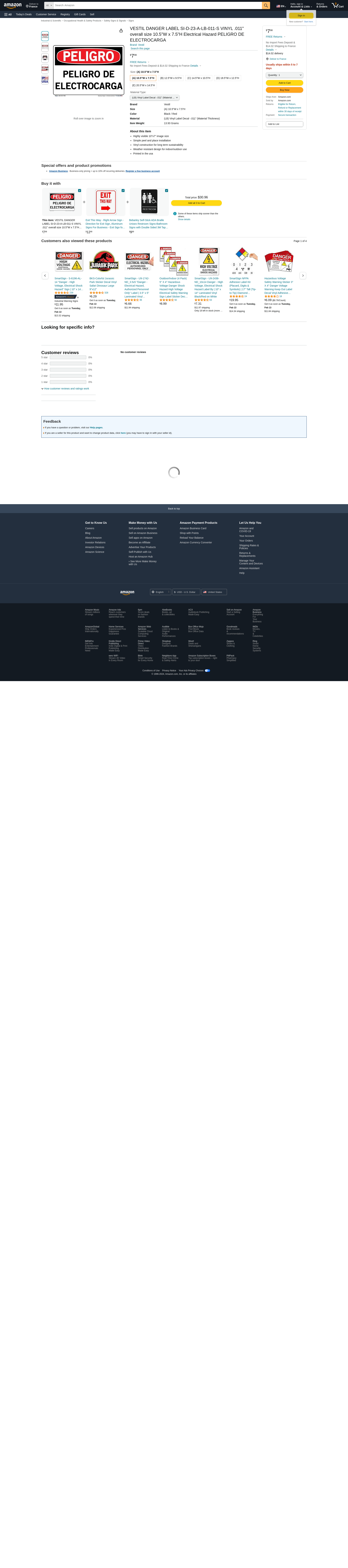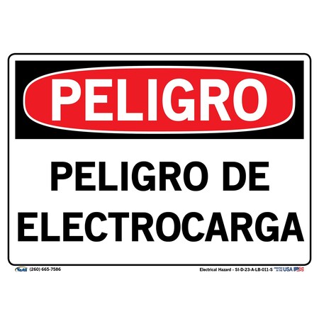 VESTIL DANGER LABEL SI-D-23-A-LB-011-S VINYL .011" overall size 10.5"W x 7.5"H Electrical Hazard PELIGRO DE ELECTROCARGA