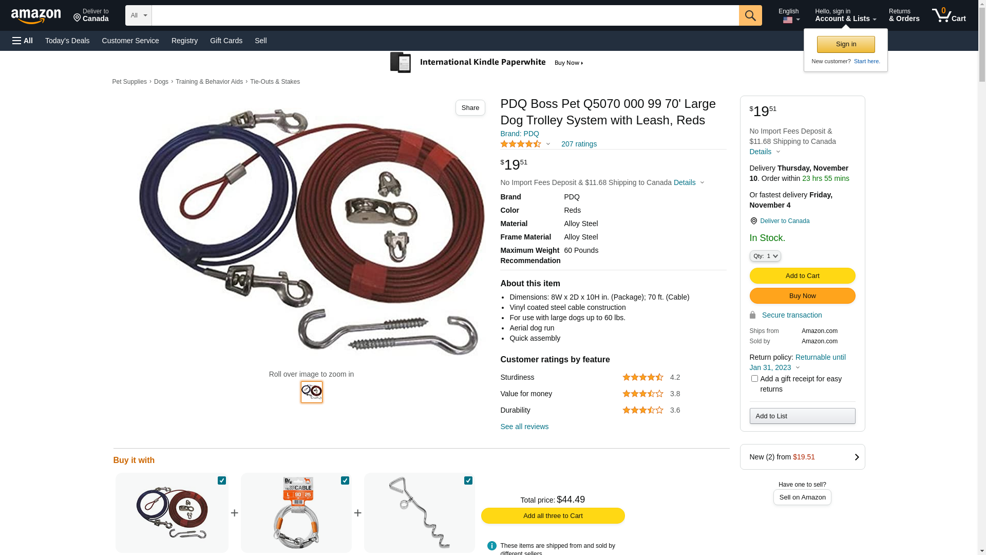 PDQ Boss Pet Q5070 000 99 70' Large Dog Trolley System with Leash, Reds