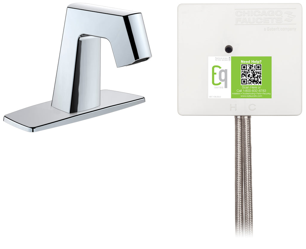 Shop and save on the Chicago Faucets EQ-B12A-42ABCP EQ Chrome EQ Angular Series Lavatory Sink Faucet with Hands-free Infrared Detection here online at PlumbersStock - quality home building supply.
