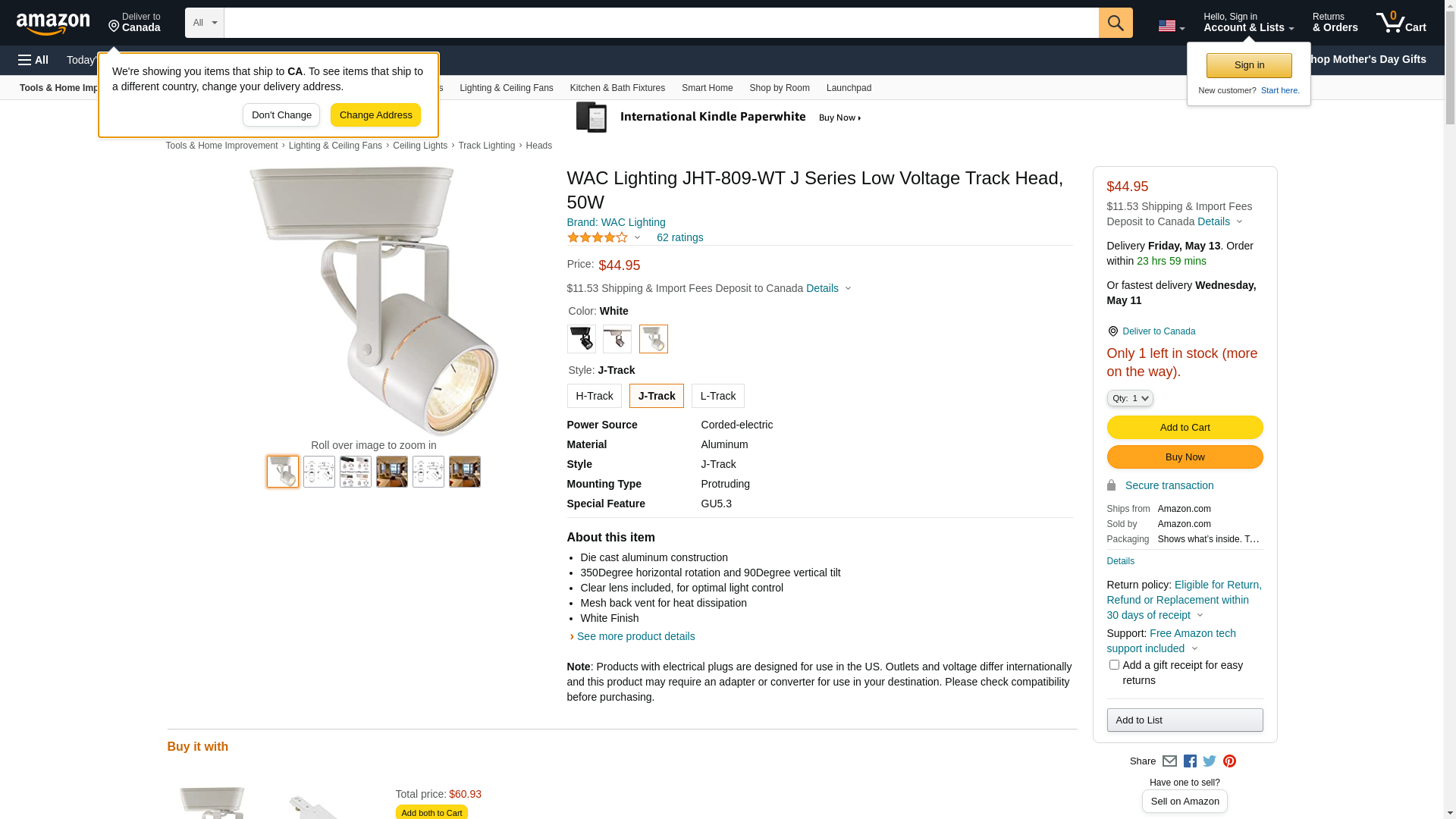 ![]() gordonelectricsupply.com | JHT-809-WT | 1 | WAC LTG Orders over $150 Usually Ship Next Day Otherwise 5-7 days | 1 | 1 @ $44.95 |