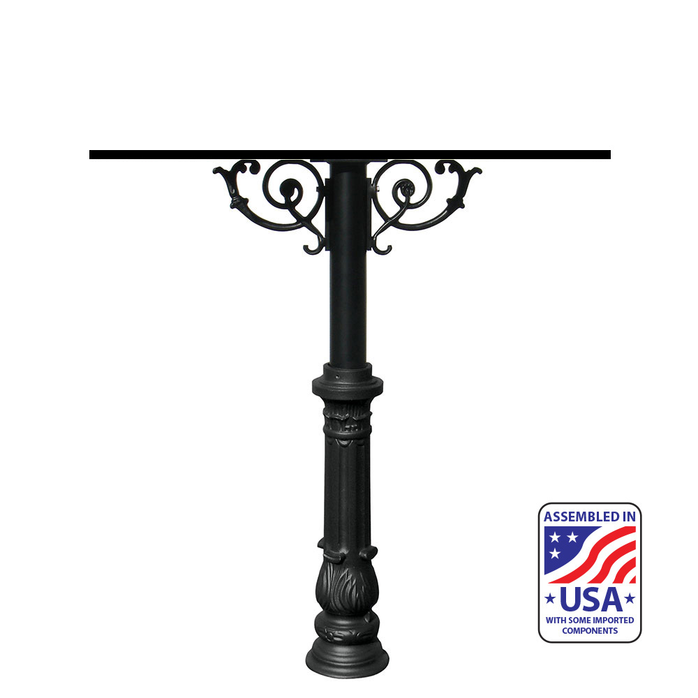 - Cast Aluminum Post with quad mounting plate and decorative Scroll Supports