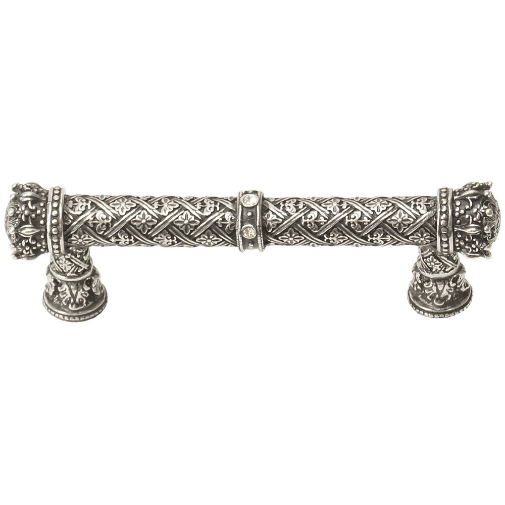 Crowning Glory Queen Anne Collection - Queen Anne 4" Centers Pull With Swarovski Crystals in Platinum with Aquamarine by Carpe Diem Hardware - 6131-24-AQ | Knobs 4 Less