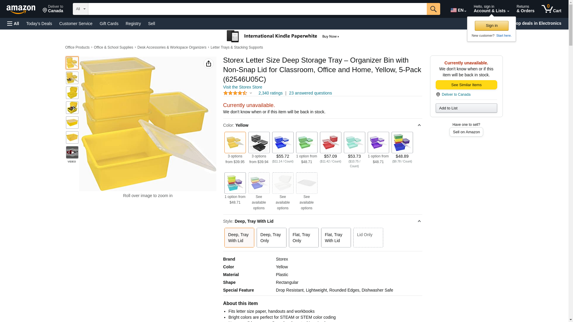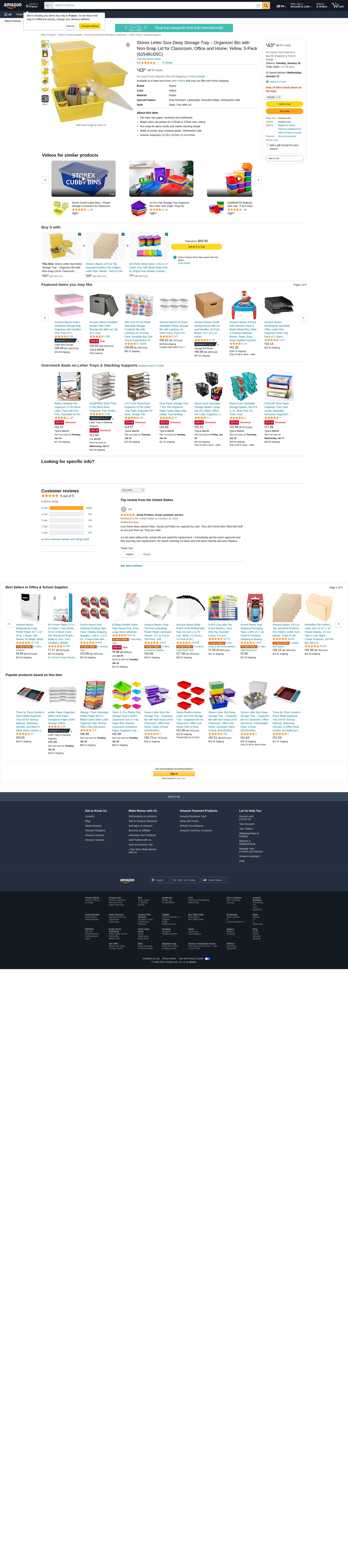 Storex Letter Size Deep Storage Tray – Organizer Bin with Non-Snap Lid for Classroom, Office and Home, Yellow, 5-Pack (62546U05C)