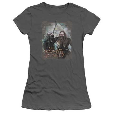 Trevco The Hobbit-Wrongs Avenged Short Sleeve Junior Sheer Tee, Charcoal - Medium