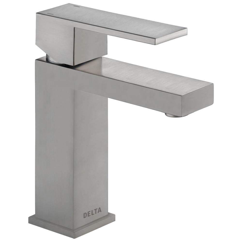 Delta Faucet Modern Single Hole Bathroom Faucet Brushed Nickel, Single Handle Bathroom Faucet, Drain Assembly, Stainless 567LF-SSPP