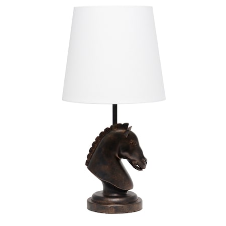 Simple Designs LT1089-DBZ 17.25" Tall Polyresin Decorative Chess Horse Bedside Table Desk Lamp w White Tapered Fabric Shade for Décor, Accent Light, Gameroom, Kids', Living Room, Bedroom, Dark Bronze