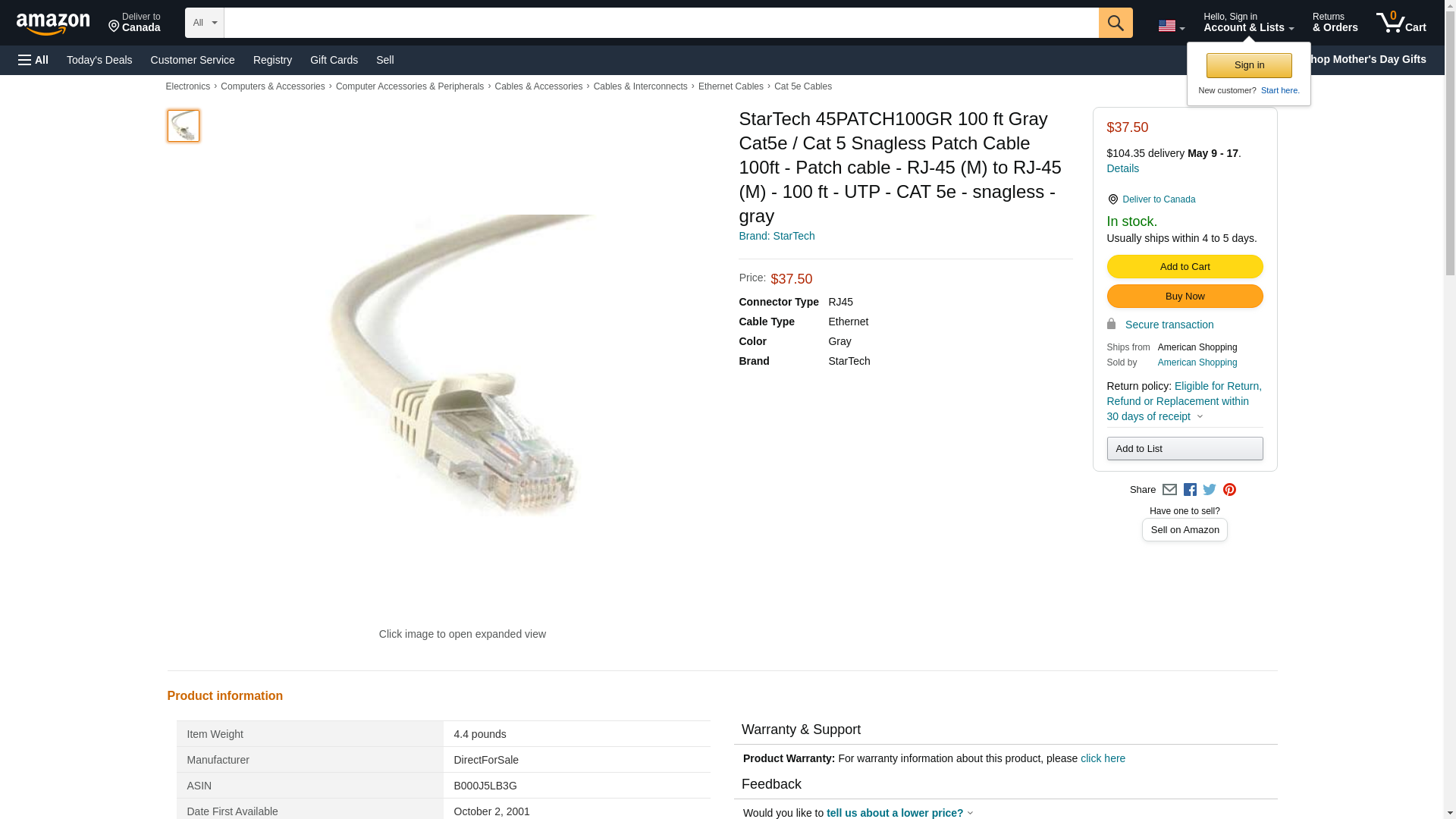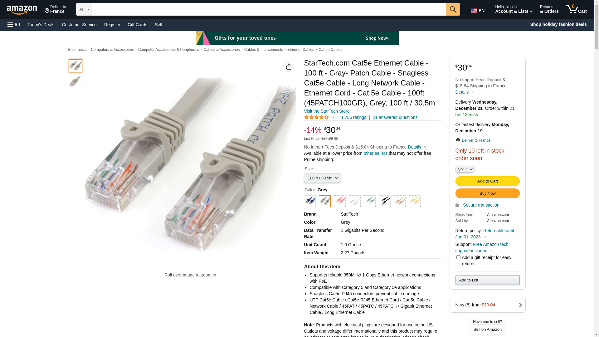 Buy StarTech.com Cat5e Ethernet Cable - 100 ft - Gray- Patch Cable - Snagless Cat5e Cable - Long Network Cable - Ethernet Cord - Cat 5e Cable - 100ft (45PATCH100GR), Grey, 100 ft / 30.5m: Cat 5e Cables - Amazon.com ? FREE DELIVERY possible on eligible purchases