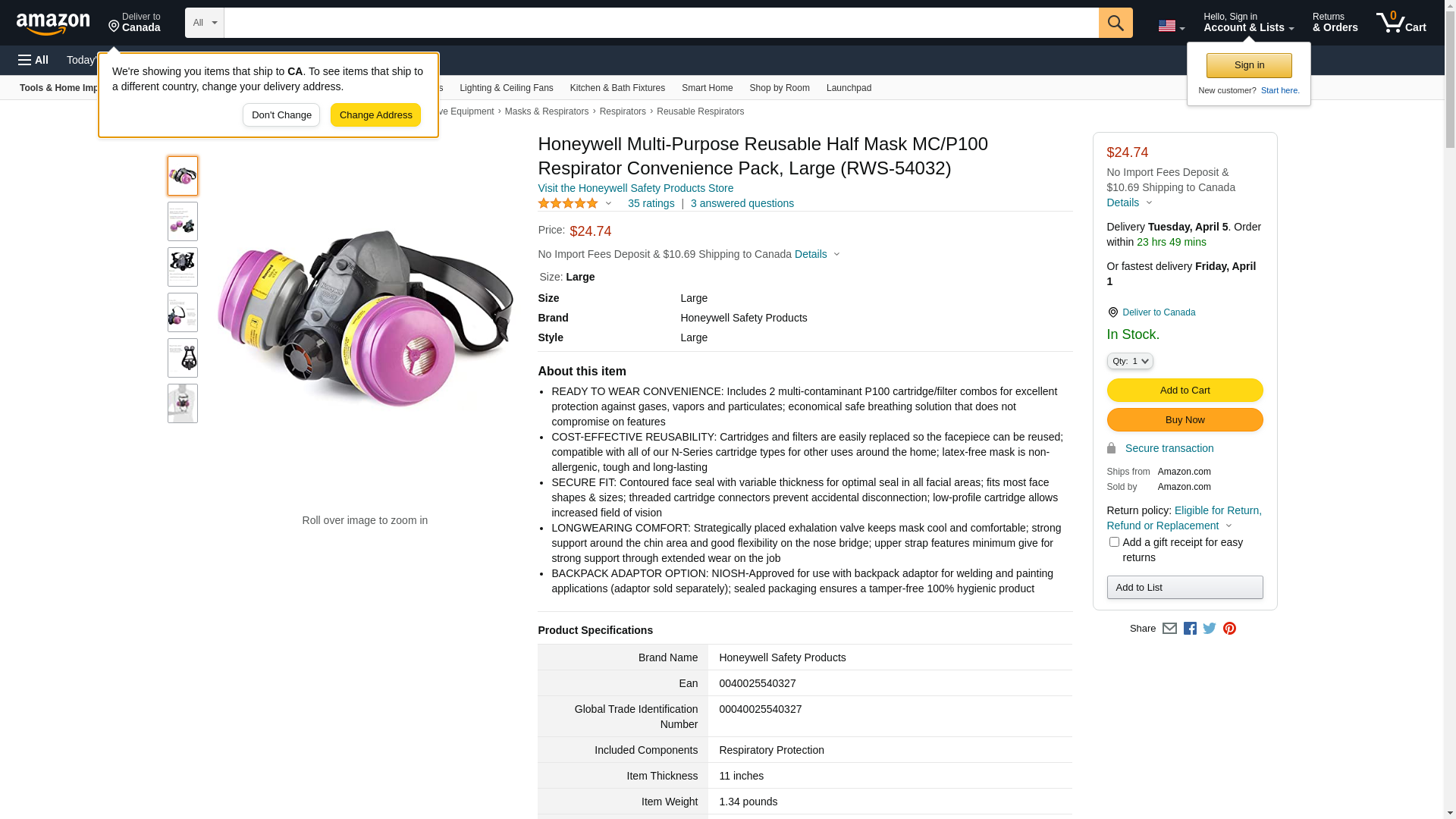 | Feature | MC/P100 Multi-Purpose Respirator Convenience Pack; Elastomer half mask respirator with multi-contaminant cartridges and P100 filters, Size Large |