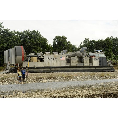 LAMINATED POSTER Local Haitian children stand in front of a landing craft air cushion assigned to Assault Craft Unit Poster Print 24 x 36