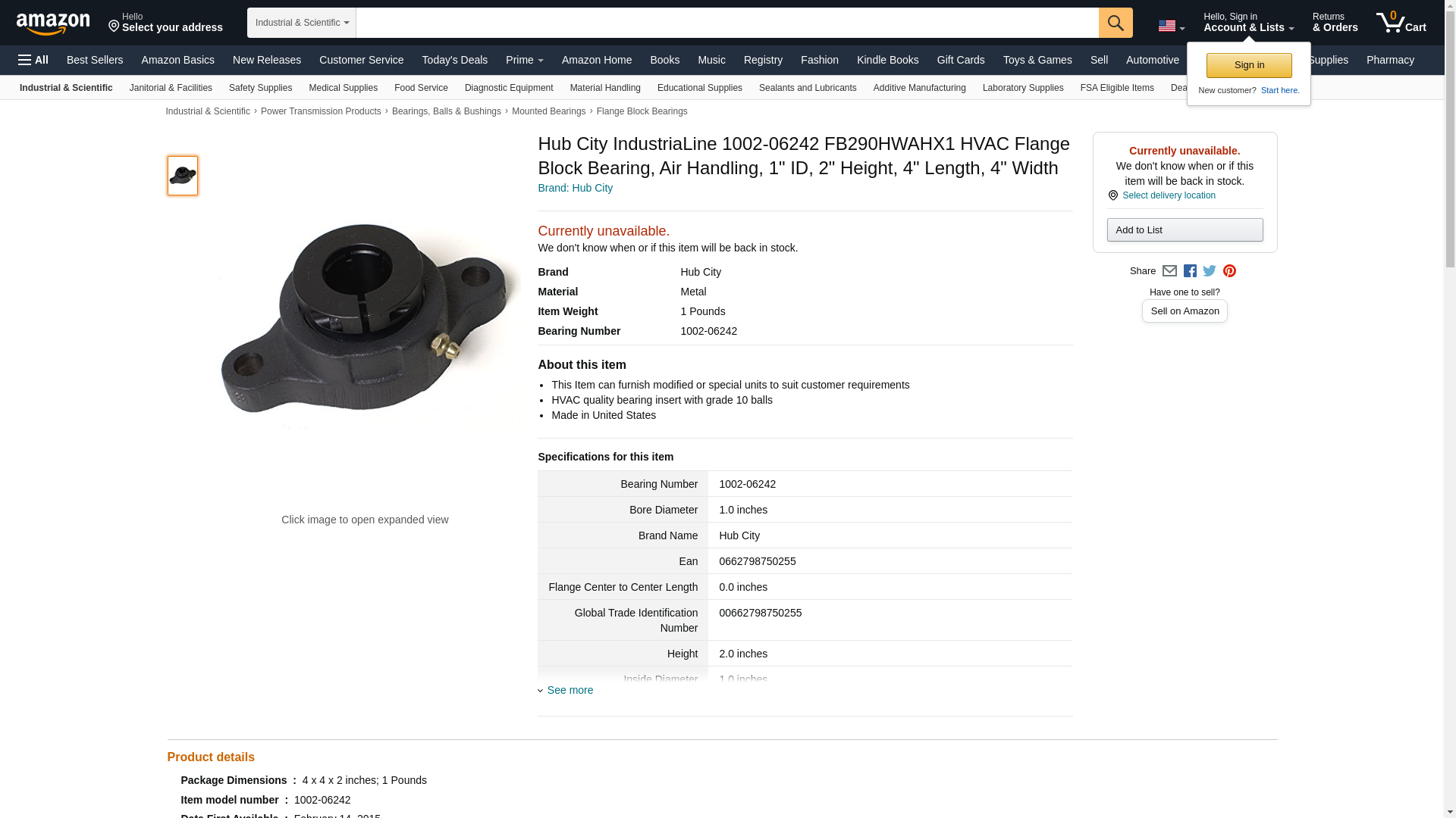 Hub City IndustriaLine 1002-06242 FB290HWAHX1 HVAC Flange Block Bearing, Air Handling, 1" ID, 2" Height, 4" Length, 4" Width